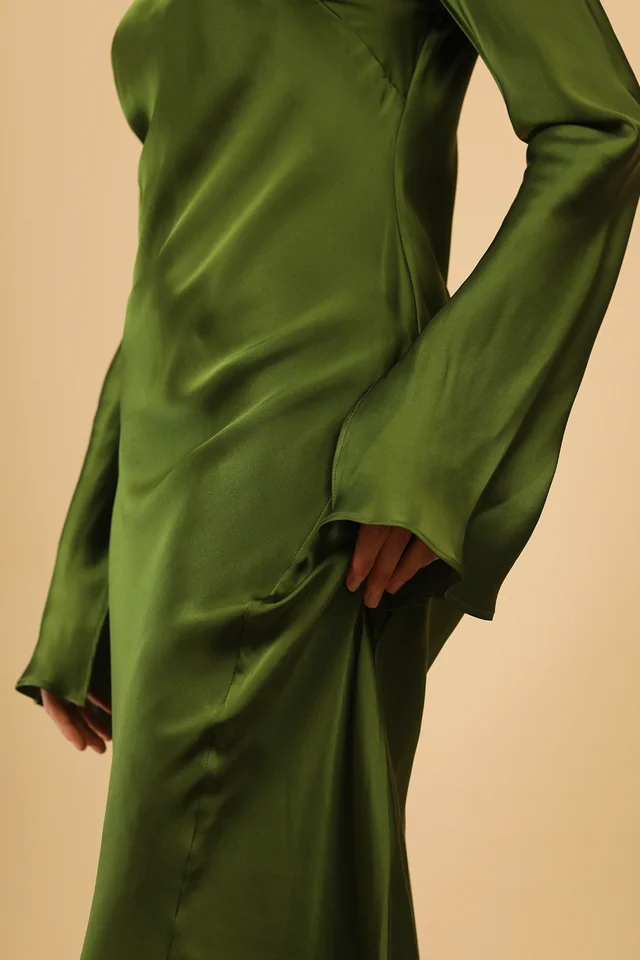 Fern Silk Satin Dress In Emerald Green Lora Gene Loragene